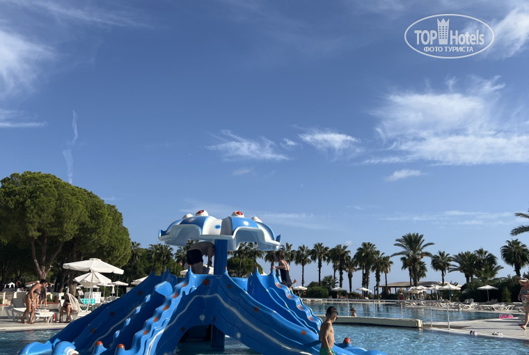 Территория отеля - это настоящий райский уголок: ухоженные газоны, цветущие кусты, бассейны с чистейшей водой и уютные зоны для отдыха. Дети с удовольствием проводили время на водных горках, а мы с мужем отдыхали на шезлонгах под ласковым солнцем.