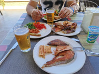 Еда меня устроила, овощи,и фрукты, сыры типа алдыгейского, оливки, маслины. Из мяса цельным куском-тушенная говядина, баранина, курица. Остальное из фарша и очень острое, мне из фарша не понравилось ничего. Рыба-красная, белая. Красная вкусная, скумбрия горчит