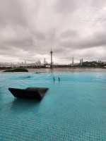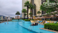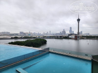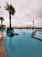 Сами бассейны большие, красивые, чистые, но не глубокие (1,3 м). Их три: большой, детский и средний. Около бассейнов всегда дежурит спасатель. Много лежаков с зонтиками. Температура воды не жаркая, примерно 26-28 градусов. В пасмурную погоду, дождь и ветер кажется, что бассейны холодные. С бассейнов открывается красивый вид на Башню Макао, мосты, залив, китайский город Чжухай.
