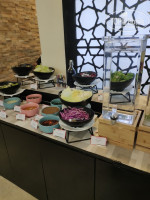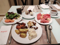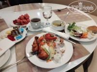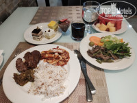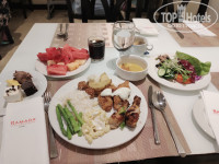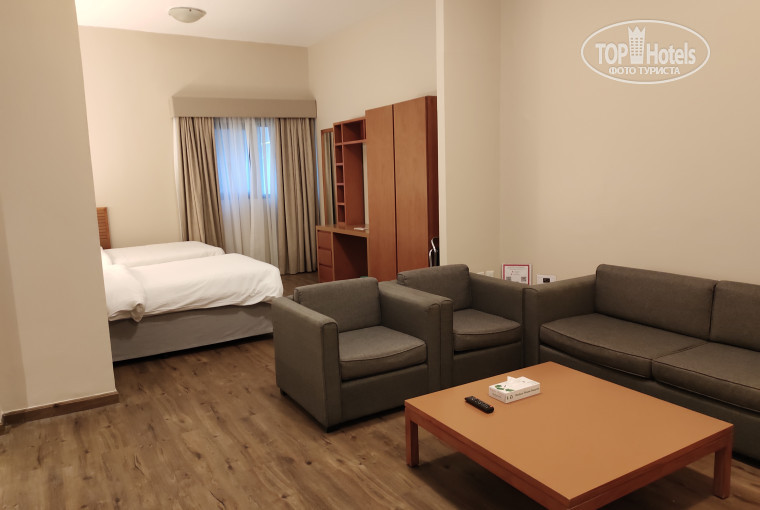 Отдыхала в конце сентября, одна. Температура была +38, вода +30, вечером влажность доходила до 90%. Выбрала этот отель по хорошим отзывам, отсутствию депозита и туристического налога, и по наличию ежедневного бесплатного автобуса до Дубаи молл. Разница между Белой, у пляжа, и Черной Рамадой, составляла около 50 тыс. руб., посмотрев расписание автобусов, а также, что такси на пляж стоит от 15 до 20 дирхам, решила поехать в Черную и ничуть не пожалела. Да, привязка к автобусу создало некую суету, все время куда-то бежишь, но, со временем, привыкаешь. Сразу о валюте. В отеле курс доллара 3,45, в Дубае молл был по 3,65 и можно найти такой курс и в обменниках в Аджмане. Я покупала в Москве дирхамы по курсу 25,3, получилось выгоднее, чем покупать доллары и искать обменник с курсом не ниже 3,65, чтоб хотя бы не потерять на обмене. Летела Флай Дубай, прилет в Дубай. Туда рейс задержали на 45 мин, обратно вылетели по расписанию. В полете мало, но кормили. В отель приехали минут за 40, а обратно забирали первыми и выезд был за 6 часов!! до вылета, других за 4 часа забирали. Вылет был из DBX2 и посадка на рейс начиналась за час до вылета. Дьютик в нем небольшой, на что-то цены очень дешевые, есть помещение для курения. Заселение в отель с 14, нас заселили примерно в 13 часов. На ресепшен есть русскоговорящий сотрудник, все объяснил, спросил курящий этаж или нет, я попросила курящий, он сказал, что мы вам дадим номер для некурящих с балконом и курить можно только на балконе. На пляже можно курить только у мусорок или в баре. Сотрудники знают несколько слов и фраз по-русски и проблем не возникало, по-английски говорят все сотрудники. Попросила адаптер, сказали их нет, но в номере были USB розетки у кровати, с зарядкой телефона проблем не было, а вот свой фен или плойку включить без адаптера некуда. Номер студио, во второй башне,на 11 этаже, 2-1104, на кухне микроволновка, чайник, холодильник, стаканы, чашки, остальное по запросу, вид на соседнюю башню и углом на город и, вдалеке, виден залив. Номер отличный, все работало, в ванне веревка для сушки, но там ничего не сохнет, есть сушилка и выносила ее на балкон. Удобно, что в номере кондиционер регулируется на 0,5 градуса и можно подобрать комфортную температуру, странно, что нет режима осушения, было влажно в номере. Уборка ежедневная, старались убираться утром, когда была на пляже. Все пополнялось ежедневно: шампунь, гель для душа, лосьон, наборы для чая кофе, вода, пополняли бутылки и 0,5 и 1,5 л. В отеле есть сауна, бассейн, тренажерный зал, магазин с сувенирами. Кормили очень прилично, брала все включено. Вторые блюда, в основном, в каком-то соусе, много индийских блюд с карри, но всегда можно что-то выбрать. Была козлятина, баранина, говядина, курица, рыба, предположительно, телапия. Не всякий отель может похвастаться таким разнообразием мясных блюд. Из простых гарниров: рис, макароны, запеченный картофель, овощи на пару, причем аль денте - хрустят. Овощи, салаты, супы. А уж кондитерка выше всяких похвал: умеренно сладкая, легкая и воздушная, просто тает во рту, даже было с золотом. Из фруктов арбуз, дыня, ананас всегда, а на завтрак еще апельсины, яблоки и финики. В отеле и на пляже приходится называть свой номер: взять напитки в лобби, при входе в ресторан, взять пляжные полотенца, сесть в автобус до Дубаи молл. WiFi отличный везде и в отеле и на пляже. Имейте ввиду, что в ОАЭ 