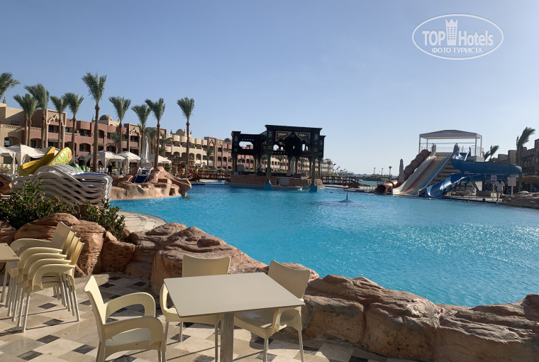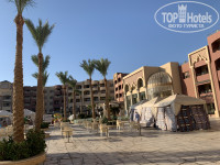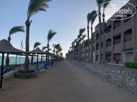 Сам отель имеет хорошее расположение, он напоминает подкову, есть своя большая лагуна, там удобный песчаный заход для детей и людей не умеющих плавать. Сама лагуна красивая, по периметру много спусков в воду. И от моря она огорожена сеткой, что бы не заплывала опасная живность. Лагуна глубокая, плавать там хорошо. Но минус это грязь которая скапливается у берега, сами туристы бросают туда бутылки, стаканчики и прочий мусор. Работники убирают конечно, но не успевают. Есть души в виде пещеры, что бы сполоснуться после морской воды. На другой стороне здания пляж с морем. Удобные спуски в море по лесенке, но лучше конечно иметь кораллки, что бы не поранить ноги. С утра после прилива вода по пояс, а после обеда там по колено. Но с маской можно плавать, рыбки разные есть и остатки кораллов тоже. Если пройти метров 50 в море, там уже глубина и вот там то можно увидеть всю красоту Красного моря. Большие стаи цветных рыб, огромные скаты, рыба фугу, рыба пила, огромные рыбы попугаи, рыбы клоуны, красивейшие кораллы. Очень много морских ежей. Есть на пляже бар, где можно взять напитки. Минус- на этой стороне нет душа где можно сполоснуться после моря, приходилось ходить туда где лагуна, хорошо хоть есть сквозной выход через корпус. Полотенца для пляжа можно взять по карте, пункт расположен в корпусе рядом с бассейном.