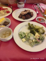 Еда нам понравилась, большое разнообразие. Сначала перепробовав многие блюда и получив расстройство желудка - убавили пыл))) Официанты бегают, как пчёлки. Спрашивают, что будешь пить и сразу же приносят. Тарелки грязные сразу уносят. Кушали всегда в своем отеле, в итальянский ни разу не ходили, но слышали, что там хуже.
