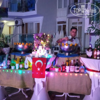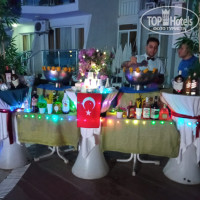 Отель хороший, начиталась отзывов ожидала что то страшное. Но все отлично, номер большой с балконом, вид на бассейн. Лифт есть. Бар возле бассейна с алкоголем с 10 до 23 наливают сколько просят, мы пили пиво и вино красное. Бар в лобби кофе машина, соки и холодное кофе я на него прям подсела, круглосуточно. Бар на пляже с 10 до 17 кофе машина, соки и бутылки спрайт, фанта, пепси наливай сколько хочешь, готовят бургеры и картошку фри сразу свежее ешь, главное везде одноразовые стаканы! Душ и туалет, раздевалка, когда приехали работало потом все сломали. Руки сильные, а мозгов не очень. В столовой мы смеялись бабки за час стояли потом бегут накладывают горы берут 100 тарелок, мы ходили через час все ставили второй раз тарелки и еду все вкусное повару респект. Чай кофе машина соки в столовой. Сладостей достаточно. Мальчишки бегают суетятся убирают посуду, всем улыбаются. С 12 до 14 бесплатно хамам и сауна, ходили каждый день. Пляж рядом лежаков хватало, море заход шикарный. Номер убирали каждый день, постель на 4 день меняли. Возле бара музыка, танцевали, кому не хватило возили на дискотеку часто. Бассейн большой чистый. Директор отеля за всем смотрит ходит контролирует молодец! Не воруют!! Все в номере лежало на виду не прятала. Главное проблема некоторые люди, при мне одна притащила полотенца кинула в лицо с воплями мне два дня не меняли полотенце, другая орала в столовой грибы ей жаренные не достались увидела у кого-то. Красные лица давление, подойдите улыбнитесь уборщице поздоровайтесь на турецком, все вам будет и настроение хорошее. На следующий год приедем, все понравилось! Спасибо персоналу за все!