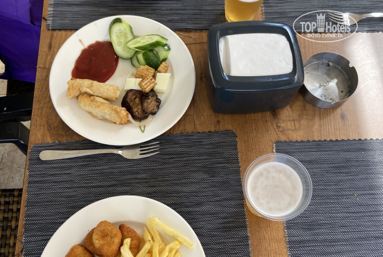 На территории отеля 4 бара + в ресторане. Неплохой выбор алкогольных напитков в Лобби и в баре у главного бассейна: пиво, вино, ром, виски, джин, водка, раки, бейлис и другие. Есть хорошие коктейли: мохито, джин-тоник, голубая лагуна, секс на пляже, по просьбе еще что-нибудь придумают. В ресторане только пиво, вино и раки. В барах на пляже и у дальних корпусов из алкоголя только пиво, но этого более чем достаточно.