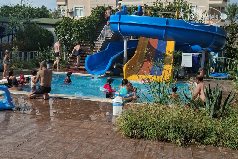 Отель 3 звезды, поэтому нужно понимать, что здесь будет проще, чем в пятизвездочном. Персонал приветливый, еда вкусная, но однообразная, но голодными точно не останетесь. Номера,конечно,хотелось бы получше и клининг почаще. Но аниматор Бурхан - это просто класс!!! Днем водное поло для желающих, вечером конкурсы и дискотека, много русских песен. Конкурсы и для детей и для взрослых,каждый день призы) , деткам мороженое, взрослым сувениры. Файер шоу, пенная вечеринка и много другого. Проход к пляжу через мост, это немного неудобно, тяжело подниматься, особенно с кругами. Пляж- галька.На пляже для проживающих в отеле есть шезлонги, дают напитки(кроме алкогольных). Бар на территории отеля работает до 22.00. К бассейну приносят в 16.00 сладости. Имеются горки в бассейне, это интересно и взрослым и детям. Первое впечатление от номера было не очень, но мы там почти не находились, поэтому, в принципе,потом было не важно. Кондиционер работал, спать было комфортно. Персонал и отдыхающие были дружелюбные,поэтому отдых удался)
