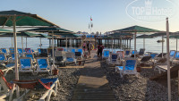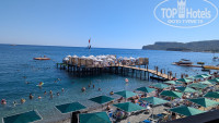 Расположение отеля очень удачное, и центр рядом и море в 3 минутах, через подземный переход. А пляж с платформой, если хотите загорать на платформе, то занимайте место в 6 утра, мест реально может не быть на пляже в 10 утра. В 10-00 открывается бар на пляже и начинается утренняя зарядка. В баре пиво, воды и айран, а в павильоне арбузы, дыни и перекус. Море 28 градусов. С платформы можно нырять, можно позагорать на понтоне.