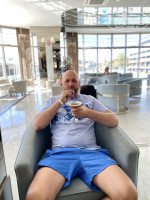 Питание отличное, разнообразное. Много зелени, фруктов, мяса, рыбы, морепродуктов. Большой выбор алкогольных и безалкогольных коктейлей. Хороший выбор мороженого. Посетили мексиканский ресторан, понравился стейк из говядины! Вкусная пахлава, тортики и пирожные не сильно сладкие. Выпечка свежейшая!