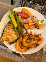 Ассортимент обеда и ужина перечислять не буду, ибо слишком много. Скажу только, что всегда в обед и ужин есть рыба на гриле как минимум 2х видов (сибас и дорада), салаты или закуски с красной рыбой и морепродуктами (мидии, кальмары, креветки), всегда есть макароны с соусом боленьезе, остальное меняется. Мы любители баранины и отрывались тут по-полной программе, она вкусна в любых проявлениях. Также из мяса много говядины, говяжий язык (тает во рту), ну и курица (её не пробовали, дома наедимся). На ужин стабильно изобилие морепродуктов, всегда креветки жареные, всегда салаты и закуски с морепродуктами, стейки лосося, роллы, суши, сашими, один раз застали осьминогов и 1 раз застали раков. Про гарниры и пасту ничего не буду говорить, всего навалом. И ВСЁ, подчёркиваю - ВСЁ - невозможно вкусно! Разве что десерты подкачали - европейские сладости не удались у них, кроме чизкейка, но вот зато турецкие вкусности - это просто отвал башки! Я ела пахлаву во многих местах Турции, в старинных кондитерских Стамбула в том числе, но тут пахлава просто невозможно вкусна! Были также ужины с тематическими десертами: один вечер был с шоколадом и конфетами ручной работы, с рахат-лукумами ручной работы, я еле-еле остановилась... вкусно до безобразия! Был вечер с чизкейками разных цветов и вкусов, а ещё вечер с макарунсами, тоже очень вкусно!