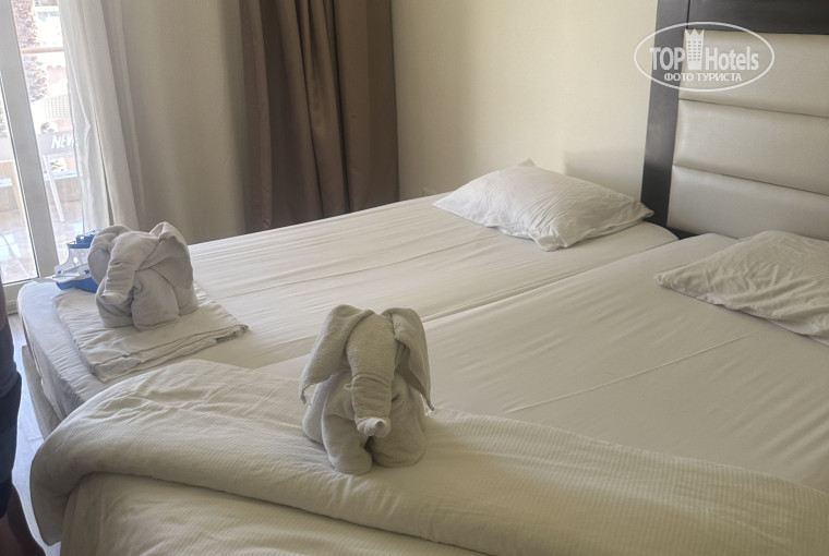 Поселили нас ,как я и просила заранее в тихом реиновированном номере,уборщик крутил прикольных зверушек из полотенец,вокруг в корпусе одни немцы.Воду пополняли регулярно и спрашивали все ли нас устраивает и ничего ли не надо.Вообще персонал крайне внимательный.