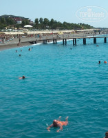 Пляж не большой и так как территория очень маленькая, то совсем рядом. Расположение такое - отель, бассейн, снек бар и пляж. Лежаков хватало всем, был пирс с навесом. На нем, конечно,все стараются занять места пораньше. Можно подняться в снек бар взять пиво, фрукты и принести на пляж. Спускаться с пирса удобно, да и заход в море не плохой, но в коралках будет удобней. Плит и валунов нет.