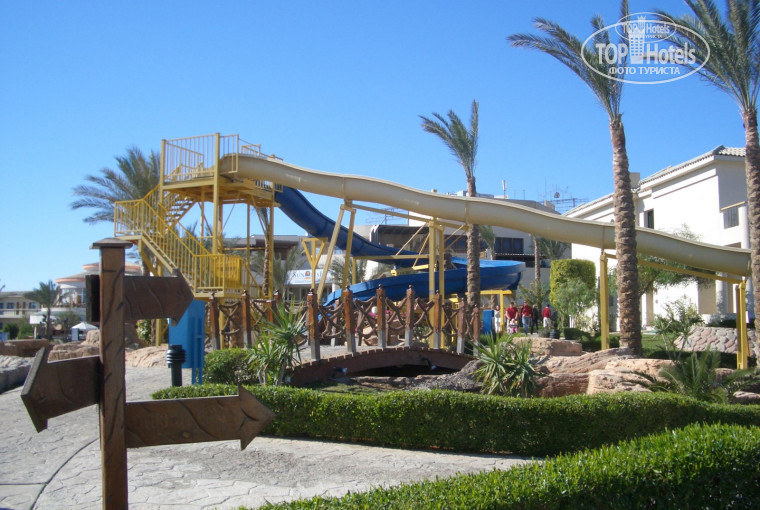 Территория - прекрасная, ОЧЕНЬ зелёная, вся в пальмах и цветах, с речкой посередине, мостиками и разными переходами.... Это Вам не голый (хоть и тоже, вроде бы, зелёный) пятак посередине отеля, как в Бароне, например.... Всё пространство пересекается зелёными улочками, с двухэтажными домиками, увитыми зеленью, и не просматривается насквозь... Очень уютно и интересно.... Для детей - водные горки....