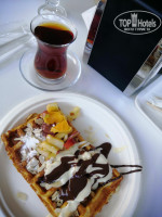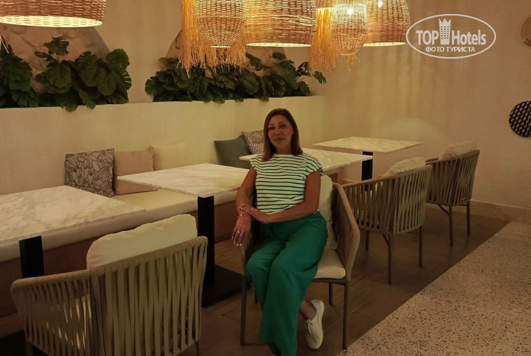 По поводу еды, все очень вкусно. Мясо в любых вариация. И жареное, и тушеное(хотите с овощами, хотите без). Курица, индейка, говядина, баранина. Нам уж больно понравились куриные отбивные. Гарнир тоже на разный вкус(картошка фри, варёный картофель, пюре, рис, макароны). Также был говяжий язык(до сих пор вспоминаю о нем, тает во рту). Различные салаты. Креветки были, вкусные. Один день были роллы, но мы их не пробовали. Десерты старались попробовать все, но все равно не смогли(каждый день, что то новенькое добавляли). Шеф повар всегда в зале. Ребята официанты просто умнички(когда они отдыхают не понятно), голову только по вернёшь, а он уже рядом стоит, интересуется, что пить будет. Все очень быстро убирают, столы всегда готовы к новым гостям. Места хватало всем, хоть в зале, хоть на террасе.