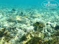 Пляж большой, три входа в море. На центральном понтоне и в правой части пляжа коралл деградировал окончательно. В дальней (левой) части пляжа, где дайвинг-центр, коралл ярче и разнообразнее, едили туда ежеутренне на таф-тафе номер четыре от ресепшн. Но свободные шезлонги "для нечленов Д-клуба" лучше занимать пораньше, сразу после завтрака. Ближе к обеду - аншлаг. При этом часть пляжа "для членов Д-клуба" практически всегда пустовала. Бесплатные пляжные бары с левой и правой части пляжа. Не оговорился, на пляже у дайвинг-центра есть еще и платный бар, для кого - я так и не понял.