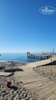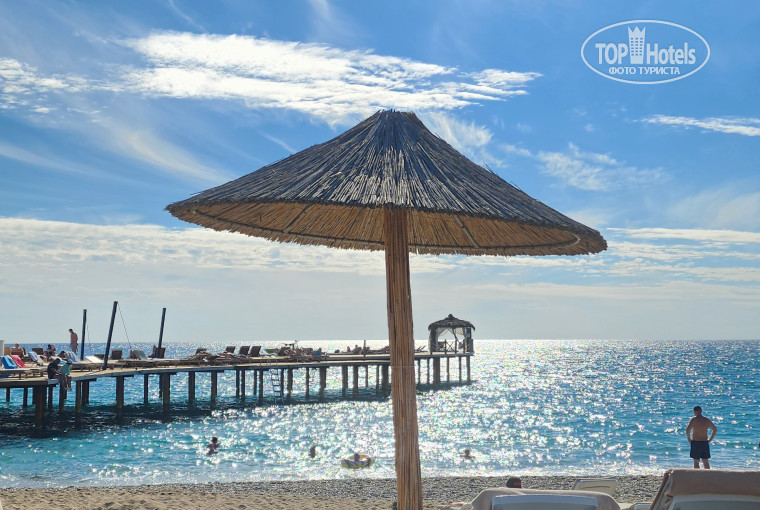Пляж хороший, заход как везде в Сиде-мелкая галька и потом глубина, но такая, что с детками комфортно. Если держаться левее пирса, заход более мягкий. На пирса неудобная лестница-нет поручней, это проблематично для людей в возрасте, свекровь не смогла вылезти.