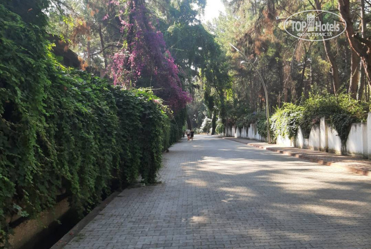 Расскажу все по порядку.Отдыхали с друзьями,три семьи.Летали с Интуристом.Прилетели поздно,номера сразу дали в главном корпусе.Номера чистые ,обычные.Наш номер выходил на центральный вход и гору.Тихо,спокойно.Завтраки обычные,все есть.Пошли на встречу с гидом,обиделся,что мы у него ничего не купили,больше мы его и не видели.Отель не большой,зеленый.Все рядышком.Возле бассейна расположился фудкорт .Пекли пиццу,гамбургеры,картошка фри ,бар с напитками.Делали в больших вазах мохито безалкогольный,компоты ,подходи наливай.Гюзлеме ,айран-все есть.Мороженное,венские вафли.Еды всякой на любой вкус.На ресепшене в лобе баре вкусный кофе делают.Интернет ловил везде.До море 7 минут по красивой аллеи.Сосны,цикады,воздух.Отель заявлен как вторая линия,но он стоит на третий.Я ходила пешком,наслаждалась,но ездит газелька,кому как удобно.На пляже места хватает всем,много раз замечала на наших лежаках чужих гостей.Работает барчик.Напитки и перекусы.Рядом за деньги можно купить фрукты и мороженное,кукурузу.Что удивило,бармены позволяли себе во время работы искупаться в море и с голым торсом в трусах вставать за рабочее место.На обед и ужин ходили в ресторан.Еда разнообразная.Внутри где кондиционер для нашей компании не было места(столы нельзя соединять)приходилось идти на улицу,но иногда хотелось посидеть в прохладном помещении,но и ладно нам и так хорошо было.Ходили в ресторан рыбный-очень вкусно,в турецком не больно-дети ушли ,не стали есть.Анимация есть,ненавязчивая.Дискотека детская,потом для взрослых чуть-чуть и в 23 все заканчивается.Аниматоры зазывают на выездную дискотеку.Возле отеля мини рынок,аптеки.Можно прогуляться до деревни,там рынок,магазины,расплачиваться можно любыми деньгами.Вывод:отель для спокойного отдыха,спальное место комфортное,голодным не останешься,каждый день физическая нагрузка-прогулка до моря,само море.Воздух целебный.солнце не обжигающие,так как горы и сосны. Отель рекомендую.Единственное может быть скучно для подростков и молодежи,им делать нечего,но спасал интернет,он по всей территории )))).Спасибо за гостеприимство!!!Да,забыла ,у нас был ранний выезд и нам дали сухие завтраки с собой.Очень приятно.