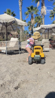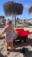6. Пляж. Красота. Вода в октябре была примерно 25 градусов, чистая в основном. Заход в море первые дни был уж слишко неудобным из за мелкой гальки, потом привык даже двухлетний ребенок. Шезлонги и столики с qr кодом напитков, но он не работал. Все ходили сами в бар, нам говорили, что не хватает персонала, чтобы обслуживать весь пляж. На пляже детская площадка, но она неочень интересная для детей. Много грузовиков больших, кто успел забирал себе к шезлонгу, чтобы ребенок играл рядом с родителями.