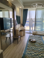 Отдыхали с семьёй в октябре 2024 года. Шикарный отель, невероятно красивый ресепшн, интересно отделаны номера, питание на любой вкус. Приехали в 9 утра примерно, нас сразу отправили на завтрак. Покушали, решили пойти к бассейну. Поплавали, позагорали и в 14-35 нас заселили. Номер стандарт 3515 в третьем корпусе на пятом этаже с видом на бассейн. Номер небольшой, убиралась у нас каждый день очень приятная женщина, мусор выносила, пылесосила, пол мыла, пополняла минибар. Всегда улыбалась, здоровалась, видно что работает на совесть. Полотенца меняла каждый день, постельное всегда поправляла, раза два мне кажется меняла. Не понравились вафельные покрывала вместо одеяла, жёсткие, немного кожа загорела и все, прикосновение раздражает. Лучше бы обычный пододеяльник. На пляж мы либо ездили на отельном автобусе, либо прогуливались пешком, расстояние небольшое. Пляж песочный, лежаков много, когда бы ни пришли, всегда были лежаки. Ресторан на пляже неплох, из напитков пиво, пепси, соки, еды достаточно- рыба каждый день, кальмары, овощи, фрукты. Единственное что мне было невкусно на пляже это мороженое. Типа с заменителем молочного жира. Питание в отеле, это можно рассказывать бесконечно, баранина, говядина, морепродукты, слишком много всего)). Мороженое очень вкусное и много видов. Вечерние шоу понравились, танцы, цирк, шоу с мотоциклами. А свой луна парк при отеле это вообще находка, много каруселей, дети в восторге. В общем минусов как для нас практически не было, ешь, пей, веселись, отдыхай.