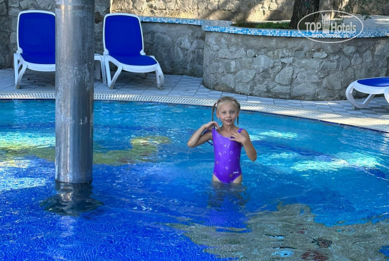 По поводу пляжа: честно-не купались(помним-конец октября), но со стороны он выглядит неплохо. Зато есть отличная альтернатива - бассейн с подогревом! В этом году работали и взрослый и детский! И вот за детский бассейн отдельное спасибо от дочки. Она была в восторге, что можно плескаться отдельно от взрослых. На территории отличный небольшой зооуголок, животные и птицы чистые и ухоженные, с радостью приходили их кормить. Играли в шашки, настольный теннис, а так же заглянули на корты для игры в большой теннис - там тоже немного поиграли.
