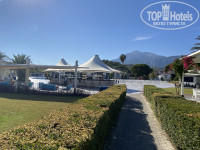 Отдыхали в этом отеле в 2023 году, в этом году решили вернуться снова, так как отдыхом остались довольны. Заселение прошло быстро, наученные прошлым годом что всем приехавшим ,у кого забронирован номер ,, Стандарт,, сразу предлагают заселиться в корпус H( это по нашим меркам эконом класс какой то!!! )сразу сказали что мы в отеле второй раз и нас заселили в корпус G, Номер стандартный со всем необходимым для отдыха. Все для гигиены-шампунь, кондиционер, гель для душа, лосьон для тела, мочалки, зубные щетки с пастой, бритвенный станок, ушные палочки, ватные диски, шапочки для душа. В номере в шкафу тапочки и халаты. ( халаты были маленького размера, позвонили на рецепшен и через 5 минут принесли нужный размер)Так же есть мини бар с набором пива, спрайт, кола, фанта, молочные коктейли. Отель зацепил тем, что от расположен в 2-3 этажных как бы бунгало,а не огромный отель с лифтами которые вечно приходится подолгу ждать. Территория очень зеленая и просто огромная, где приятно гулять. По вечерам в 21.30 очень красивые шоу. Про еду писали многие она в отеле просто замечательная, разнообразная и главное очень вкусная( были во многих 5* в Турции, есть с чем сравнивать!) Выбор каждый день очень большой и разнообразный , каждый найдет себе еду на свой вкус. Есть курица, индейка, говядина, баранина, перепелки, рыба. Все это жареное, тушеное, отварное. Раки, креветки, мидии , рыба копченая и соленая, дают даже на завтрак.Очень много овощей и фруктов,давали груши, яблоки, бананы, дыню, сливы, апельсин, виноград, клубнику. В прошлом году давали еще инжир и арбуз, в этом году не было. Из алкоголя 5 видов бутылочного пива, вино красное, белое, розовое, все это стоит в ресторане в холодильниках, подходи и бери сколько надо. В баре около бассейна огромный выбор импортного алкоголя. Бармены делают очень хорошие коктейли. На пляже лежаков хватало всем, может потому что конец сезона и народу не очень много было.Отдыхом и в этом году остались очень довольны. Персонал молодцы, все стараются, в номере убирали хорошо, мыли полы, меняли полотенца. Надеемся вернуться еще!
