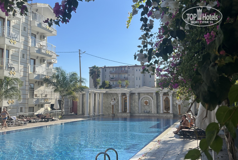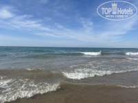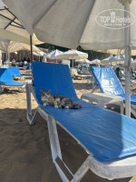 Дорога на пляж минут 7-8 минут через соседний апарт-отель и через дорогу (есть магазины справа и слева, пиво 2.5 евро, мороженое 1 евро, есть аптека 24 часа). Спуск/подъем не такой ужасный, как пишут в комментариях, мы особо не замечали его, возможно, сказался октябрь и не было сильной жары. На пляже лежаков всегда хватало, зонтики и шезлонги очень старые, в ветреную погоду наш отель единственный не открывает зонты. Вход в море пологий, песок. На пляже масса водных развлечений. Есть платный бар, пиво 0,3 - 5 евро, фреш 4 евро, мороженое 3 евро, кофе 4 евро. Есть переодевалка, туалет, душ. Веселый горластый мужчина с душой продает кукурузу (Цвай Эуро штука :) ). От бара есть платные нормальные шезлонги с зонтом 200 лир.