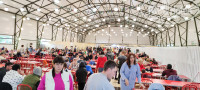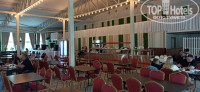Территория комплекса включает в себя 3 квартала: Спортивный, Екатерининский, Семейный, ходить можно везде, пользоваться всем, кроме столовой – тут в каждом квартале своя. К слову, про еду: у нас были только завтраки и, хоть и однообразные, но очень вкусные. Сама столовая представляет собой подобие некого ангара с большим числом столов. Так как в комплексе живет много людей, приезжает много спортсменов- столовая всегда битком, но свободный столик найти можно - сотрудники работают довольно быстро (как те, кто убирают со столов, так и те, кто пополняет ассортимент). У каждого комплекса есть несколько КПП на разные стороны, ходить можно насквозь. Ресепшн каждого квартала находится в глубине дворов, что кажется несколько странным решением.