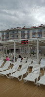 Не очень близко в отношении покушать, если на побережье хотите посидеть в кафе-надо будет немного пройтись, как и до ближайшего Магнита или Пятерочки. Но есть варианты покушать на территории самого комплекса, по ценам-как везде. Мы ели шашлык в КинZZa на территории – так он был самый вкусный из всех в Сочи))). Можем порекомендовать еще кафе «ЛЕС» - приятная атмосфера, но тут надо идти…
