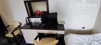 В номере у нас было: 3 односпальные кровати (с хорошими матрасами - спалось чудесно), 2 прикроватные тумбочки, 3 стула, шкаф для вещей, стол, телевизор, мини-холодильник, кондер (были не в сезон-не пользовались), полки для обуви и чемодана, 2 зеркала (+в ванной), чайник, 3 стакана, 3кружки+3 чайные ложки, несколько вариантов освещения номера (не было темно, как часто это бывает, к сожалению, в других отелях), шторы блэкаут. В ванной комнате доп. Подсветка зеркала, фен (не пользовались), много всяких крючков (что тоже большая редкость для отелей), полотенцесушитель, принудительная вытяжка. Балкон огромный, есть выдвижная сушилка. На 2х этажах были утюги с гладильными досками бесплатно. Вход в номер (да и везде, где пропускная система) осуществляется по браслету – его прикладываешь и «Сим-Сим» срабатывает.