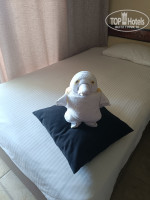 Заселение прошло быстро очень, и мы сразу пошли кушать! Номер нам дали хороший, уютный, всё необходимое есть в наличии. Уборка проходила каждый день, и всегда нам делали прикольные фигурки из полотенец!