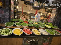 Питание на высоте: огромный выбор зелени и фруктов, несколько сортов сыров. Постоянно есть какая-нибудь рыба или на пару , или гриль . Традиционно большой выбор сладостей, к которым невозможно привыкнуть, каждый раз разные. В роли мяса - курица и индейка. Если не хватит трех приемов пищи, то голодным все равно не останешься: есть пул-бар, снек-бар и бич-бар.