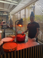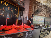 В определенные часы для вас готовят: донеры, пиццы, лепешки гезлеме , венские вафли, крошку- картошку с начинками, подают мороженое. Коктейли, вино, пиво вполне приличные.