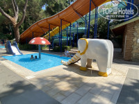 Территория отеля - просто прекрасная , ухоженная. Возле каждого из корпусов свой сад. В саду возле главного корпуса есть площадка с тренажерами и столики со скамейками. Много локаций для фото. Отель рассчитан на большое количество гостей, поэтому многолюдно и на территории и в ресторане.