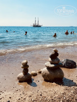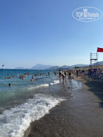 Отель расположен на 2 линии.Дорога до пляжа 5 минут пешком по алее среди сосен. Для ленивых организован подвоз на грузовичке. Шезлонгов всем хватало.Море шикарное, чистое и теплое!!!