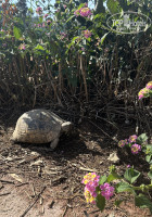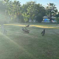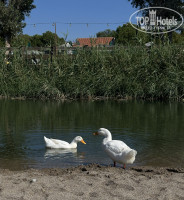 - На территории встретили всех обещанных животных: ёж, черепашка, павлины (в том числе альбинос), утки, рыбы в речке, крабы, петух и куры, кошки.