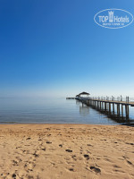 Пляж большой, места находили всегда. Ширмы от ветра тоже были в наличии. Про отмель уже писали, но мы купались либо в бассейне, либо ходили на пирс, у берега не ходили в воду. Но смотрится интересно, природное явление. И вообще пляж живописный, качели, пальма, пирс - очень красиво.