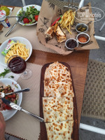 Если лень идти на обед в отель,в баре с великолепным видом на море ,всегда можно полноценно покушать на выбор- по предлагаемому меню,или взять пасту,гёзлеме,овощи,фрукты,и также взять алкогольные напитки,мороженное,вкусный айран.