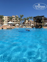 Отдыхали в отеле семьей 2+2 с 31.10 по 11.11. Приехали в 5 утра, заселили сразу, т.к. эта ночь у нас была оплачена. Заселили в номер в главном корпусе с двуспальной и односпальной кроватью. Мебель старенькая конечно, но все чистенько, все работало. Предлагали принести доп.кровать, но мы попросили утром, т.к. хотели отдохнуть. И хорошо, т.к. с утра поняли, что будем менять номер, потому что он оказался над промышленными вентиляторами и спать было некомфортно, очень шумно. К моему удивлению, начитавшись отзывов, номер поменяли без проблем, без бакшиша, только задали вопрос почему хотим заменить. Сначала предложили номер в корпусе рядом со сценой с видом на лагуну, но он оказался слишком маленьким, меньше первоначального, я так поняла они там двухместные. Потом показали угловой номер в главном корпусе на 4 этаже. Номер просто огромный, можно в футбол играть, огромный санузел. Фишка, что в нем нет балкона, там что-то на подобие большого французского окна-балкончика. Вид шикарный на бассейн, лагуну и море, а пока идешь по открытому балкону к номеру от лифта вид на море и Арабию с Арабеллой. Через два дня потек кран-в этот же день все поменяли вентиль, все устранили. По территории вопросов нет. Вода со всех сторон, внутри лагуна, с левой стороны море, очень красивое, рыбы есть в наличии, в том числе скат и мурена. Территория большая, аквапарк через соседний отель по подземному переходу. По еде: обычно, без изысков. Пиццы не было, говядина стейками-не вкусно, фалафель, рыбка-очень вкусно. В остальном обычный египетский набор среднего отеля. Снек-бар в самом конце отеля по левой стороне подковы (там где кораблики швартуются): бургеры, фри, овощи, пирожные, иногда оладьи. Теперь о минусах, для меня существенных два, для такого большого отеля и 100% заполняемости отеля: 1. Лежаки - их катастрофически не хватает, люди занимают с 6 утра. Но это не самое ужасное. Работники на пляжа с вечера занимаются «бронированием» лежаков за деньги. Утром выходишь, а пол пляжа лежаков связаны какими-то старыми вещами, сдутыми кругами и т.д. Когда пытаешься убрать, говорят, что тут занято, ожидая получить $. Такого не в одном отеле не видела, подпортило впечатление конечно. 2. Очереди за столиками, приборами, едой-не рассчитан ресторан на такое количество гостей.