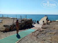 Пляж. Это отдельная песня (вытьё волка на луну)! У соседей всё норм, а тут – все камни Мира потрачены на то, чтоб сделать непонятную террасу в качестве «второго этажа»! И сильно сомневаюсь, что именно его коснётся реновация! Свободных лежаков к 9-30 у моря нет, а раньше там глубокой осенью делать нечего! Выход со временем нашёлся – загорали на импровизированных лежаках диско-бара и пользовали пляж «соседа» справа (там, почему-то, и вода теплее была). Ещё о пляже – кабинка для переодевания одна на всех и вместо крючков ввёрнуты саморезы…Пляжный душ работает в режиме фонтана – льёт и вверх и вниз. В таком же режиме работают и писсуары в ближайшем туалете.