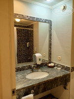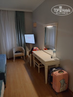 Номер. Москитка на балконе с дырками, а местным комарам не лень было подниматься к нам на 5 этаж. За неделю отдыха – отремонтировали сейф, входной замок, заменили пару лампочек и вывесили кривое зеркало по уровню… Уборка номеров безобразная. Вытяжка в санузле «естественная»(((. Свето-непроницаемыми шторами укрыться от восхода невозможно – они, скорее, для красоты. С балкона море видно, но и дорогу СЛЫШНО, а это, на секундочку, артерия, соединяющая Анталию с восточными регионами, а не захолустная улочка в Манавгате. И даже на 5 этаже чувствовалась вонь канализации… Звукоизоляция номера вполне себе – главное жить подальше от лифтов. Кстати - лифты с населением не справляются! Большинство вниз, как минимум, ходило пешком, а если один выбывает из строя, то и наверх «11-м номером» быстрее.