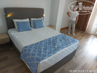 В главном корпусе отеля основной ресторан по системе «All inclusive». Завтраки, обеды и ужины. Меню максимально разнообразное. Голодными никто не остался. Супы были три раза в день, даже настоящий борщ, а не протёртый. Различные гарниры (рис, плов, бобы, пшеница), макароны (белая паста или с острым соусом), мясо (говядина или баранина), рыба (сардина, скумбрия, морской окунь, сибас, форель, тунец), птица (курица, утка, индейка), разнообразие нарезных сырых овощей, салатов, солений, выпечки и десертов. Изобилие фруктов – арбузы, дыня, груша, яблоки, апельсины, мандарины, грейпфруты, лаймы, гранаты, финики, персики, нектарины, абрикосы, сливы, виноград. Приятные безалкогольные завтраки: яичница по вкусу, которую готовят на ваших глазах, с добавками по запросу на ваш выбор (микс, сыр, овощи), яйца варёные, каши молочные, блинчики с джемами и шоколадным соусом, нарезные сыры, брынза и местная колбасная продукция. Йогурты сладкие с нарезным фруктовым ассорти, йогурты без сахара. Очень вкусный кофе из кофемашин. Чай: в пакетиках различного вкуса, а также бесподобно ароматный заварной чёрный чай. Прохладительные и газированные напитки. Утром натуральный апельсиновый сок, который делаешь себе сам. На обед и ужин различные пакетированные соки. Из алкогольных напитков – пиво, три вида вина, шампанское, крепкие местного производства. В ресторане и на территории холодильники с бутилированной водой и айраном. Персонал трудится как пчёлки. Свободные столики были всегда: как в помещении, так и на открытом воздухе. Твёрдая «5».