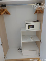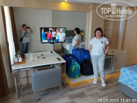 Комната № 1404 на 4-м этаже. Просторный балкон со всем необходимым (столик, стулья, вешалки для сушки белья), с прекрасным обзором (боковой вид на море, а также на городские пейзажи и горы). С сервисом в комнате повезло, всё работало: кондиционер, телевизор (спутниковое, около 100 каналов), холодильник, сейф, сантехника – в норме. За сервис и обслуживание в номере ставлю твёрдые «пятёрки»: