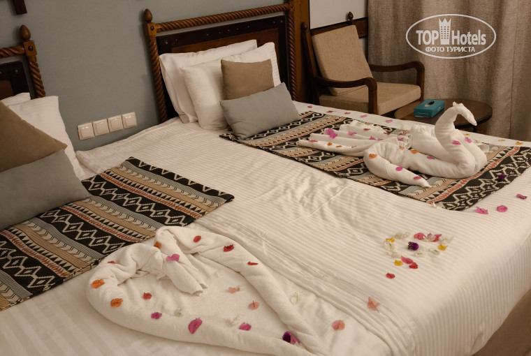 Хочется оставить отзыв об этом отеле. Отдыхали мы с друзьями (6человек) Отдых прошёл отлично, понравилось ВСЁ!!! Встретили нас в отеле прохладным напитком и предложили протереть руки владным холодненьким полотенцем, что было так приятно, после ночного перелёта. Размещение как и везде наверное в 14.00. Браслеты одели сразу, и наш отдых начался. Вкусно, очень, пообедали и пошли покорять море. А море хочется написать отдельно, не влюбиться в красное море, просто нельзя, рыбки, кораллы остануться в памяти на всегда. Замечу сразу, если собираетесь на красное море, первое, что нужно взять это маску для плавания, можно приобрести и сдесь, но сами понимаете, цена будет уже другая. В отеле много русских, что большой плюс для нас, персонал 50%, говорят на русском, что облегчило наш отдых. Питание разнообразное, за 9 дней отдыха, не приелось. Было всё из мяса (говядина, курира, куропатка, индейка) много рыбы, морепродукты. Аниматоры большие молодцы, молодые, симпатичные ребята, очень приветливые и ооочень энергичные. Отель находиться на второй линии, каждые пять минут ходит автобус, дорога до пляжа занимает примерно минут 5-7. Дорога идёт мимо стройки, возводятся новые отели, но жто ни чуть не мешает. Отдых прошёл отлично, всём рекомендую. Приезжайте не пожалеете.