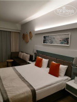 Собственный пляж, как и писал выше, находится далековато от отеля. Пешком минут 15. На шатле минут 5. Шатлы ходят каждые 10 минут. Лежаков и навесов достаточно, всё современное. На пляже неплохой бар с напитками и кухней. Кухня разнообразная, салаты, фрукты, бургеры, фри, паста, донеры и т. д. Все время отдыха обедали только на пляже. Море шикарное, мелкий песок, вход пологий, без камней. Много надо пройти, чтобы дойти до глубокого места. Температура воды в конце октября была +25, воздуха +30. Ночи прохладные +17. По спиртным напиткам. Несмотря на ультра все включено, алкоголь только местного производства. На любителя. Но ничего плохого сказать не могу. Выбор большой, включая пиво, вино, ликёры, текилу, ром, джин. Во всех барах сделают вкусный красивый коктейль. Анимация особо не интересовала. Каждый вечер была программа, выступления артистов. На территории есть спортзал, спа-салон. Сауна и хамам бесплатно. Персонал отеля отзывчивый, без нареканий. На русском общаются единицы, но объясниться можно. На отдых пришелся день рождения, пока были на пляже, персонал шикарно украсили номер, принесли тортик. Мелочь, а приятно. Контингент туристов в отеле в основном немцы, итальянцы, русские, есть поляки.