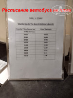 ТЕПЕРЬ О МИНУСАХ: Перед самым вылетом узнал что даже воды вам не дадут на пляже (только на ресепшн выдают на пляж по полторашке, перед выездом на автобусе), не говоря уже о пиве. Расписание автобуса для вашего удобства приложил на фото. Соответственно в первый же день окинув зорким взглядом пляж Калимеру, выбрал двух самых загорелых (давно отдыхающих) мурэн дико сексуального вида и неспешно подошёл к ним с вопросом что и как тут с водой и т.д., какие правила...? Они поведали мне, что у них иногда даже сумки проверяли (вода, алкоголь, продукты как бы и нельзя с собой).