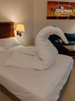 Отдыхали со взрослой дочерью в ноябре 2024 года. Отель очень понравился. До этого были в Египте только 1 раз в 5-звездном отеле, тоже в Хургаде в августе 2012 года. Предыдущий отдых не понравился ни по сервису, ни по питанию. Решили больше в Египет не летать. В этом году рискнули всё же повторить египетское направление и не прогадали. Прибыли в отель около полуночи. Из позднего ужина были только кофе и булочки с сыром и колбасой. Пока перекусили, нам уже предоставили номер. Сначала временно поселили в двухкомнатный, сказали, чтобы мы подошли утром. На следующее утро переселили в другой. Номер был на нулевом этаже - нам очень понравилось. Номер большой. Есть всё необходимое. Помимо кроватей ещё очень мягкий диван и кресло. Кровати удобные. Отличное постельное белье и белейшие полотенца. Шкафов, ящиков для белья и вешалок достаточно много.Телевизор показывал 3 канала на русском языке: ТНТ, МTV и Магазин на диване:):):). Мы телик включили один раз и больше не трогали. Соседей мы не слышали. Уборку в номере делали каждый день. Крутили нам разных зверей и букетик цветов поставили на туалетный столик. Воду, принадлежности для мытья, чай и кофе пополняли каждый день. Помимо шампуня и геля для душа клали лосьон для тела и кондиционер для волос. Всё приемлемого качества. Отель действительно находится в отдалении от других отелей. Но в этом есть и плюс - не мешают чужие анимация и музыка. На пляже только гости отеля AMWAJ. Интернет действовал НА ВСЕЙ ТЕРРИТОРИИ. Не только в лобби. Погода стояла отличная. Конечно, в это время года в Хургаде везде ветренно. Днём очень жарко, а вечером и ночью прохладно. Но достаточно было джинсовки или толстовки. Ни разу не замерзли. Море с отливами. Мы знали об этом. С пирса можно сразу нормально плавать. С берега - довольно долго идти. Плюсом является то, что на пирсе были беседки, лежаки, полочки для обуви и вещей, а также можно взять жилеты и маски для плавания. Также зона купания находится не на самом конце пирса. Это плюс - так как теплоходы и катера причаливали в конце пирса и не мешали купающимся. Лежаков хватает и у моря и у бассейна. Полотенца выдают с самого утра до захода солнца. Отдельно на пляже пункт выдачи, отдельно у бассейна. Не было необходимости тащить мокрые полотенца в номер. Всегда можно сдать и потом взять новое. Персонал на пляже помогает. Поворачивают лежаки, расстилают полотенца, разносят напитки. Очень стараются. Вообще хочется отметить прекрасную работу персонала отеля! В ресторане столы прибирали и заново сервировали мгновенно. Официанты приносили напитки. Питание разнообразное и вкусное. Вот реально вкусно готовят! Особенно понравились нежнейшие горячие круассаны на завтрак. Говядина всегда замечательная. Курица и индейка тоже вкусные. Даже пюре нормально посолено и маслом заправлено. Супы вполне съедобные. Замечательная картошка фри - всегда была хрустящая и горячая! Возможно, хотелось бы больше рыбы. Сладости не впечатлили. Из фруктов были - гуава, сливы, хурма, бананы, свежие финики, яблоки, апельсины. Хорошая кофейня в лобби. Спиртные напитки так себе. Пиво только понравилось.