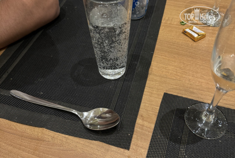 В 23ч пошли на поздний ужин, и немного расстроились от увиденного в ресторане. Народу практически не было, а столы были все в крошках, сервировочные салфетки были грязные, и на них лежали приборы!