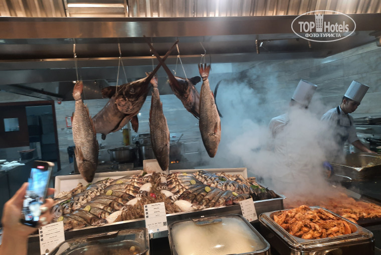 По питанию:всего очень много, почти все вкусно, но очень много однообразных блюд, давали морепродукты, мидии, крабы , кальмары, креветки. Крабам и давала два шанса, но это невкусно, я не знаю что с ними, внутри какая то каша, бесвкусная, нрчего общего с крабами😑креветки вкусные, давали на завтрак лосось, но нверное в целях экономии выносили его редко и мало, тарелку сразу не меняли, как только вынесут люди накидывались на него🤪😅. Очень вкусный манговый фреш, гуава фреш😍 мороженое мовенпик оченеь вкусный😋По ресторанам аля карт, понравился очень бразильский ресторан, повара высшего уровня там, рыбный и мангал, в азиатский так и не смогли записаться. Ресторан people так себе, время только потратили...Французский это вообще разочарование с самого начала, девочки хостесы, просто хамки какие-то, очень неприятная ситуация возникла. Хотелось развернуться и уйти.