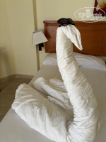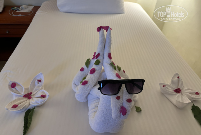 Мы с семьей заехали в отель 21 ноября . Отель приятно удивил. Территория небольшая, но все чисто ,питание отличное, персонал вежливый и большинство разговаривают на русском. Очень вкусные круассаны, дыня, мясо. Официанты старались и всегда были очень любезны. С детьми шутили , разыгрывали. Бары на пляже и у бассейнов. На еде не экономят. Нам дали двухместный номер на третьем этаже с видом на бассейн и море. Особенно красивый вид открывается на рассвете. Номера чистые , убирались каждый день. В номере были буклеты с информацией на 4-х языках о том , чтобы поменяли полотенца нужно оставить их на полу , поменять постельное белье нужно на кровати оставить буклет черной стороной. Отдельная благодарность Кариму Махмуду за его произведения из полотенец. Каждый день придумал что-то новое . Анимация в начале отдыха проходила на улице . Ребята молодцы не давали скучать!!!