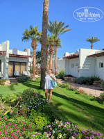 В Египте отдыхали 8-ой раз, отзыв пишу первый раз. Отдыхали с мужем и моими родителями. Ввиду того, что в последние несколько лет отдыхаем со взрослыми родителями, я постоянно в поиске идеального для наших потребностей отеля - первая линия, безветренная бухта, пологий заход в море, отсутствие чрезмерного движа, тишина и спокойствие, чистота и ухоженность. Этот отель для нас подошел идеально, сюда мне захотелось вернуться, хотя я всегда говорила, что люблю ездить в новые отели. Сначала о плюсах для нас. 1. Компактная, очень зеленая, цветущая, живописная территория. 2. Проживание в бунгало. Спроектирован отель очень интересно, маленькими одноэтажными домиками на три номера. Эти домики стоят треугольником вокруг небольшой лужайки/садика (в двух местах вокруг маленьких бассейнов) и при этом выход на эту лужайку через панорамное "окно" только у одного домика, а у двух других со стороны лужайки только вход в домик. Поэтому когда выходишь посидеть на эту террасу, очень приятное ощущение уединения, людей практически не видишь. 3. Пляж. Это наверное самое главное достоинство отеля. Он шикарный и огромный. Зонты очень большие, под ними спокойно становится 4 лежака, которые в течении дня еще и есть куда перемещать. Зонты стоят свободно друг от друга и есть возможность отдыхать семьей относительно обособленно. Пологий и комфортный заход в воду. 4. Наличие рифа и рыбок. Есть куда поплавать, что посмотреть. 5. Наличие живописного, приятного места для отдыха и посиделок. Возле основного ресторана оборудовано совершенно чудесное место с мягкими диванчиками, в тени, утопающее в зелени и цветах, с водоемом с рыбками и фонтаном. Мы очень любили там посидеть после обеда и вечером. Отель не новый, ну его освежают, ремонтируют. Номера довольно просторные, светлые и свежие, все исправно работало, кровать очень хорошая, белье, полотенца свежие. В номер дают утюг и гладильную доску по просьбе. Питание нормальное, для нас этот аспект не очень важен. Ну вечером мангал это что-то....Из-за него собственно и пишу отзыв. Копоть, гарь, вонь, дым такой, что не видно ничего вокруг, выедает глаза, дышать просто нечем. Вечерами гуляли вдоль отелей по променаду, нигде такого безобразия нет. Мангалы есть наверное во всех отелям, и вечером на них готовят мясо, рыбу...Ну столба дыма до неба не видели нигде. Вот этот момент очень подпортил впечатление. Вечером вместо свежего запаха моря вдыхать вонь, дым, гарь и копоть, так себе удовольствие. Если отель исправит этот недостаток, с удовольствием вернемся всей семьей не один раз я думаю. Потому как во всем остальном отель чудесный.