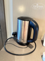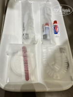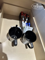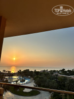 В номере продумано все до мелочей. Светильники над кроватью, разные виды освещения. Шторы блэкаут, для удобства зашторивания приделаны специальные палочки. Затемнение 100%. Балкон оснащен специальной защитой для детей - мы жили на 4 этаже главного здания - очень оценили этот момент. Большое зеркало, на которое прикреплён телевизор - зрительно увеличивало комнату. В шкафу одноразовые тапочки, халат, весы, вешалки на все случаи жизни - обычные, мягкие плечики, с защипами для брюк, сейф, фен, набор для шитья, даже утюг с гладильной доской. Много места для хранения вещей. Как шкафчики, так и выдвижные ящики. Холодильник пустой, но на каждого бутылка 0,5 воды - пополняется каждый день. Есть небольшой чайник и набор для чая - пакетики чёрного и зеленого, кофе 3 в1, сахар белый и тростниковый, даже заменитель сахара пара пакетиков. В санузле кусочек мыла, зубная паста, зубные щетки, шапочка для душа, пилочка для ногтей, ватные диски и ватные палочки. Бумажные салфетки. И в дозаторах шампунь, кондиционер, гель для душа и молочко для тела. Помимо унитаза - биде. Удивилась, что нет ершика для унитаза. Большая душевая кабина, где можно натянуть веревку - удобно повесить вещи после моря. Кондиционер в номере управляется с помощью электронного табло. Уборка каждый день, быстро и качественно.