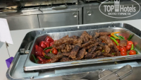 РЕСТОРАНЫ, бары – Хороший выбор блюд и всё в неограниченном количестве. Каждый день тематические вечера. 1 раз в неделю рыбный день, когда можно объедаться морепродуктами. Соте из креветок и мидий, дорадо, запечёный лосось и кольца кальмара в кляре самое вкусное на мой взгляд. Так же в другие дни делали очень вкусные шампиньоны и луковые кольца жаренные в фритюре, говяжий язык, бефстроганов (мяса очень много), хорошие сыры. Вкусные супчики. На улице каждый день гриль. Рыба, мясо, овощи. Из фруктов каждый день яблоки, груши, апельсины, мандарины, виноград, сливы, грейпфруты, дыни, нектарины. И конечно всё остальное: салаты, зелень, овощи и блюда из них, турецкие сладости. Так называемый ночной суп в 00:00 или 01:00 (точно не помню) это разный хлеб, булки, сыры, колбасы, оливки, варенье и чай-кофе. То есть перекусить можно бутербродами.